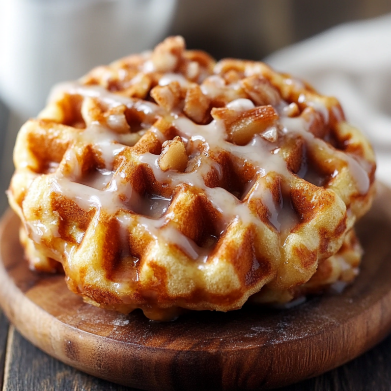 Apple Fritter Waffle Donuts are an irresistible fusion of fluffy waffles and sweet apple fritters, drizzled with a glossy glaze. Perfect for breakfast or dessert, these delightful treats feature warm diced apples, cinnamon, and nutmeg, creating a comforting flavor that everyone will love.