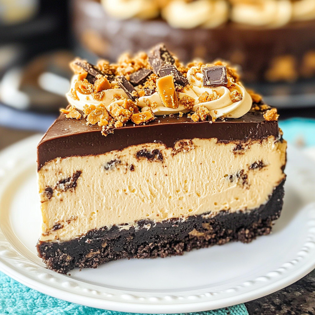 Indulge in a slice of this delightful Butterfinger Cheesecake, where creamy peanut butter meets crunchy Butterfingers in a rich chocolate Oreo crust. This decadent dessert is perfect for celebrations or cozy nights at home, featuring layers of luscious cheesecake filling topped with silky chocolate ganache and light whipped cream. Its irresistible flavor and texture make it a standout treat that is sure to impress family and friends at any gathering.