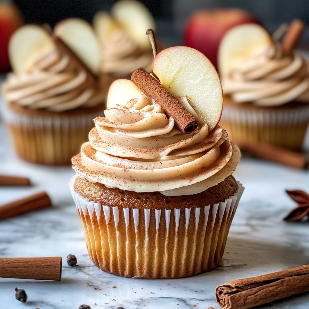 - Stunning Presentation: Topped with creamy frosting and garnished with apple slices and cinnamon sticks, these cupcakes are as beautiful as they are tasty.
