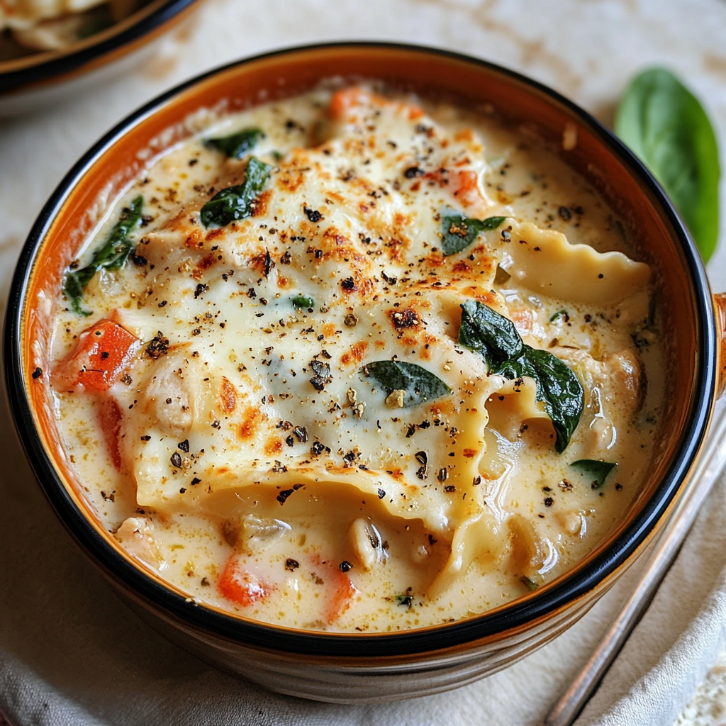 Creamy Chicken Lasagna Soup is the ultimate comfort food that perfectly blends the flavors of traditional lasagna into a hearty, warm soup. This cozy dish features tender chicken, rich broth, and creamy textures that create a satisfying meal for chilly evenings or family gatherings. Packed with nutritious vegetables and layers of flavor, this soup will have everyone at the table asking for seconds. Quick to prepare, it allows you to enjoy a homemade dinner without spending hours in the kitchen. Dive into this deliciously comforting bowl of goodness that’s sure to become a family favorite!