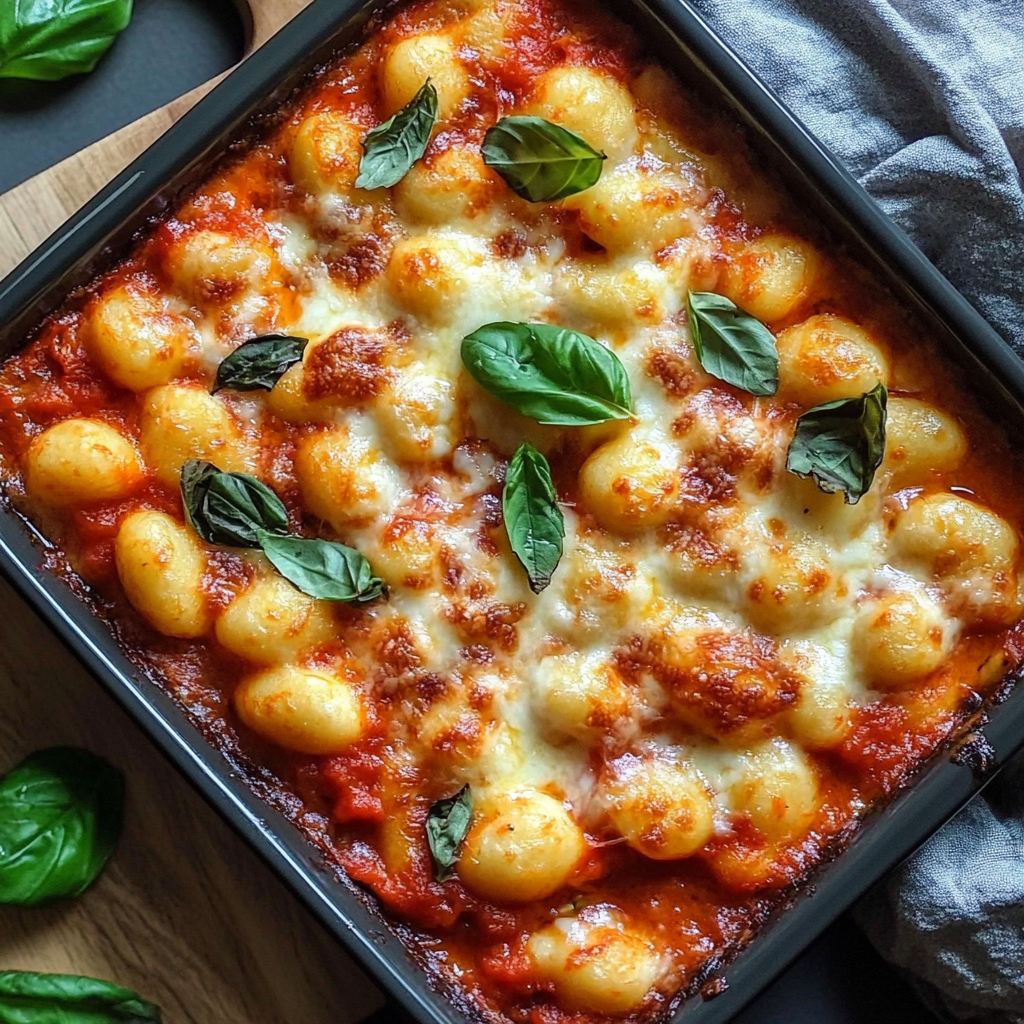 Discover the warmth and comfort of Italy right in your kitchen with this Easy Gnocchi and Tomato Bake. This delightful dish features tender gnocchi enveloped in rich marinara sauce, topped with gooey melted cheese for a satisfying meal. Whether it’s a weeknight dinner or a casual gathering, this recipe is quick to prepare and highly customizable to fit your taste preferences. Add your choice of proteins or veggies to make it your own, ensuring a delicious experience for the whole family. Garnished with fresh basil, this baked pasta dish is bound to become a favorite!