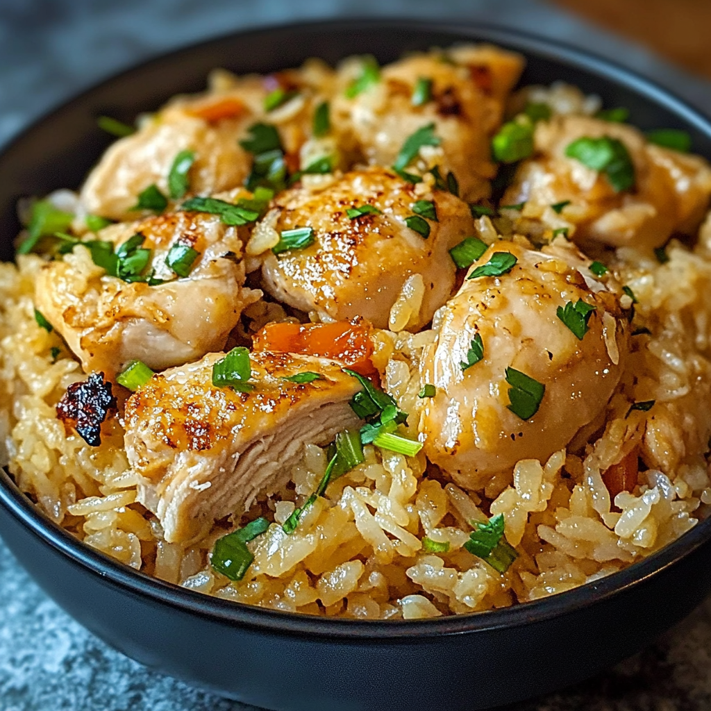 After 1 hour, remove the foil. The chicken should be fully cooked (internal temperature of 165°F/75°C), and the rice should be tender and creamy.