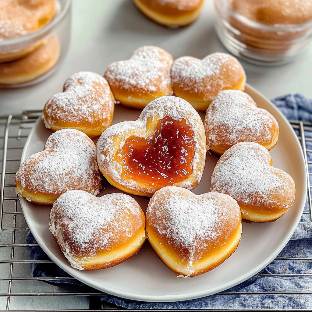 Indulge in the joy of Heart-Shaped Doughnuts, a delightful treat that brings sweetness to any occasion. These fluffy, soft doughnuts can be filled with your choice of rich chocolate spread or fruity apricot jam, making them perfect for celebrations like Valentine’s Day or Mother’s Day. Their charming heart shape adds a personal touch, making them an ideal gift for loved ones or a sweet surprise at family gatherings. With simple ingredients and straightforward preparation steps, you can create these lovely doughnuts while enjoying quality time in the kitchen with family.